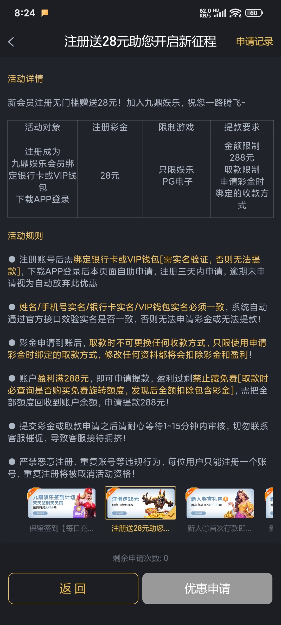 注册绑卡下载APP,优惠里面申请,几分钟到,限制pg电子,应该是288最低最高提现