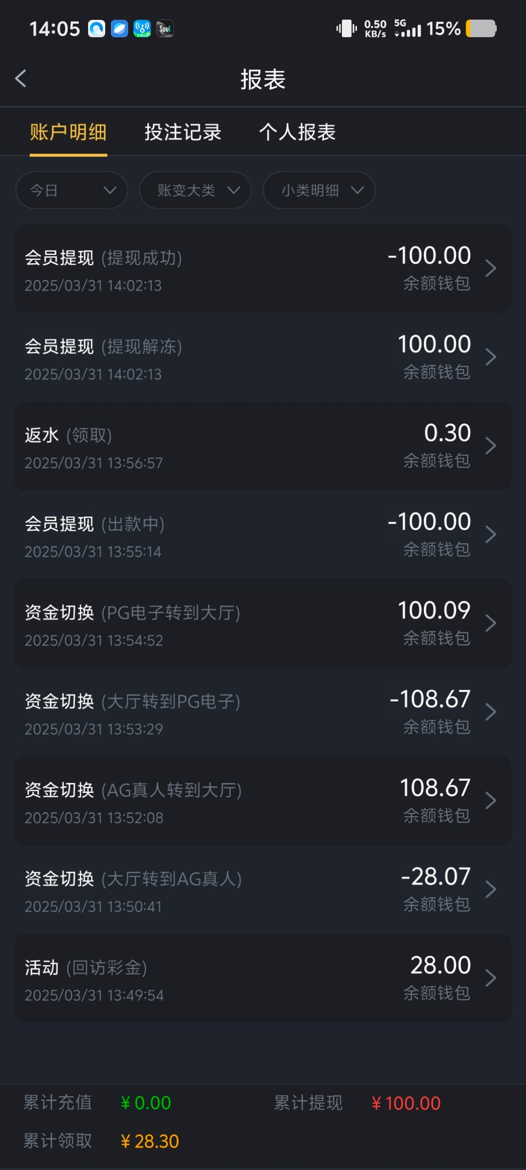 出款情况:自测(