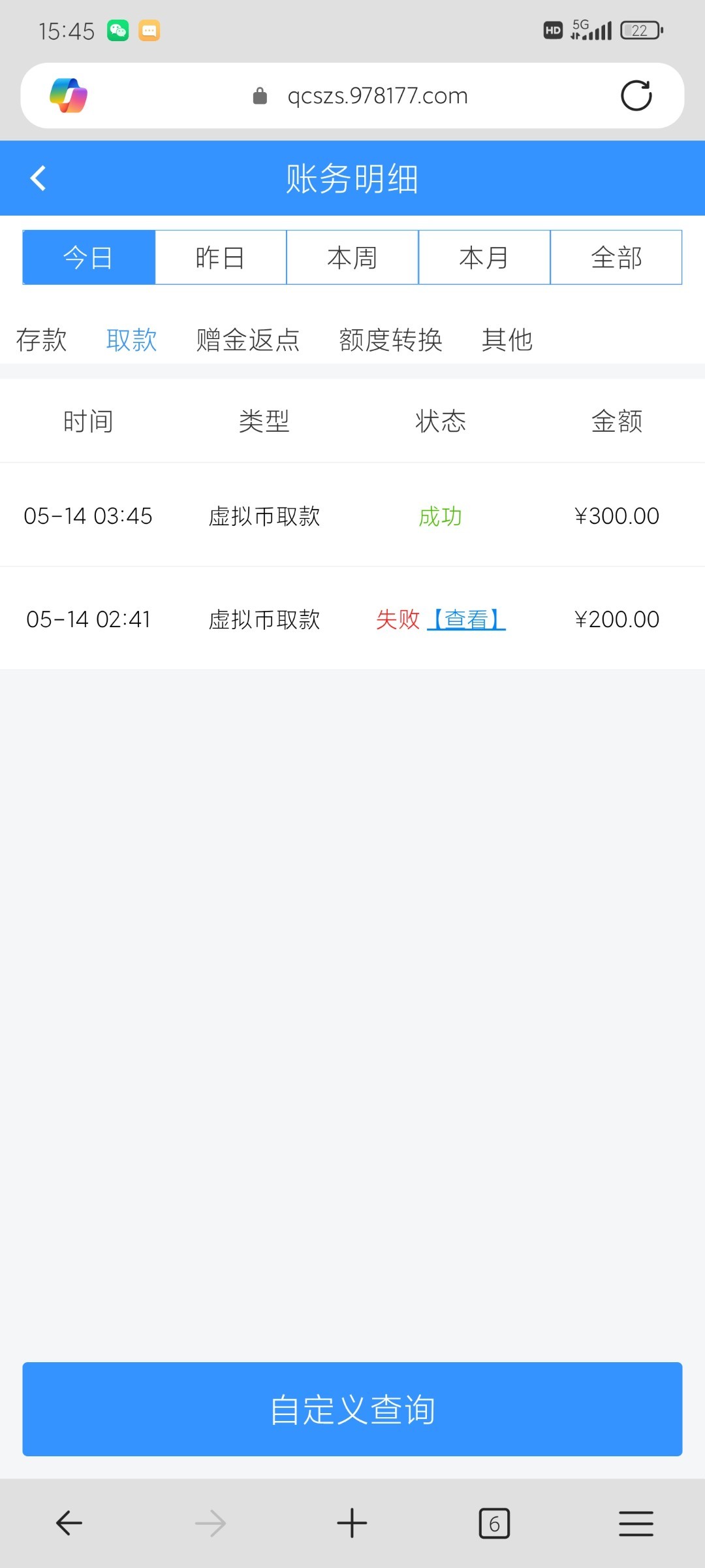 出款情况:自测(