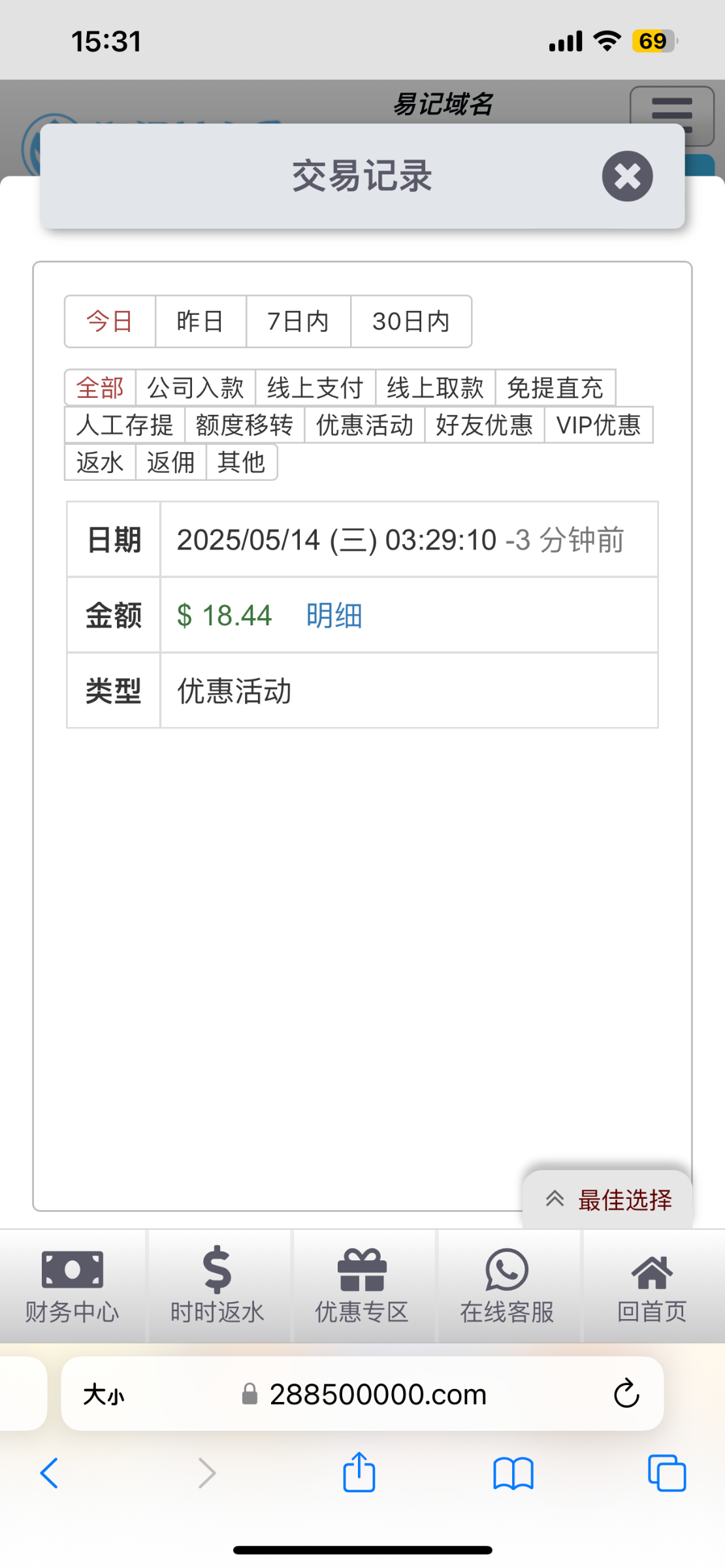 出款情况:自测(