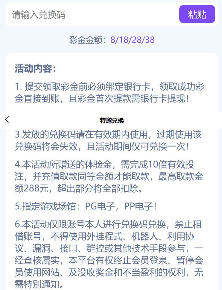 ✅商城自助拿兑换码即可,没有金币的点一下签到就有多IP领取包封号的,彩金代码在商城购买领取输入即可兑换