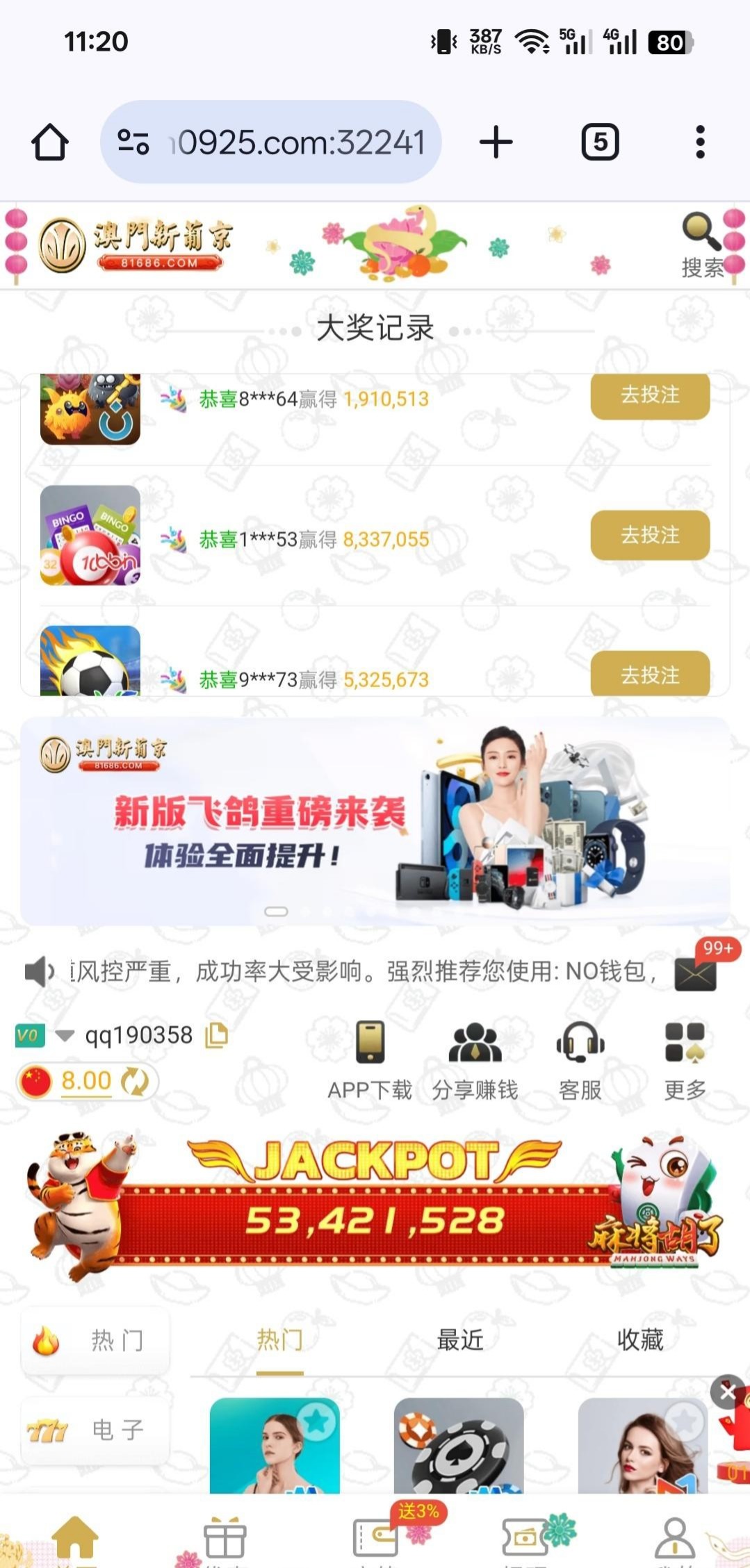 链接81686.com我是老用户接到电话了,没有充值过,漏接的老哥上去看看,送了8