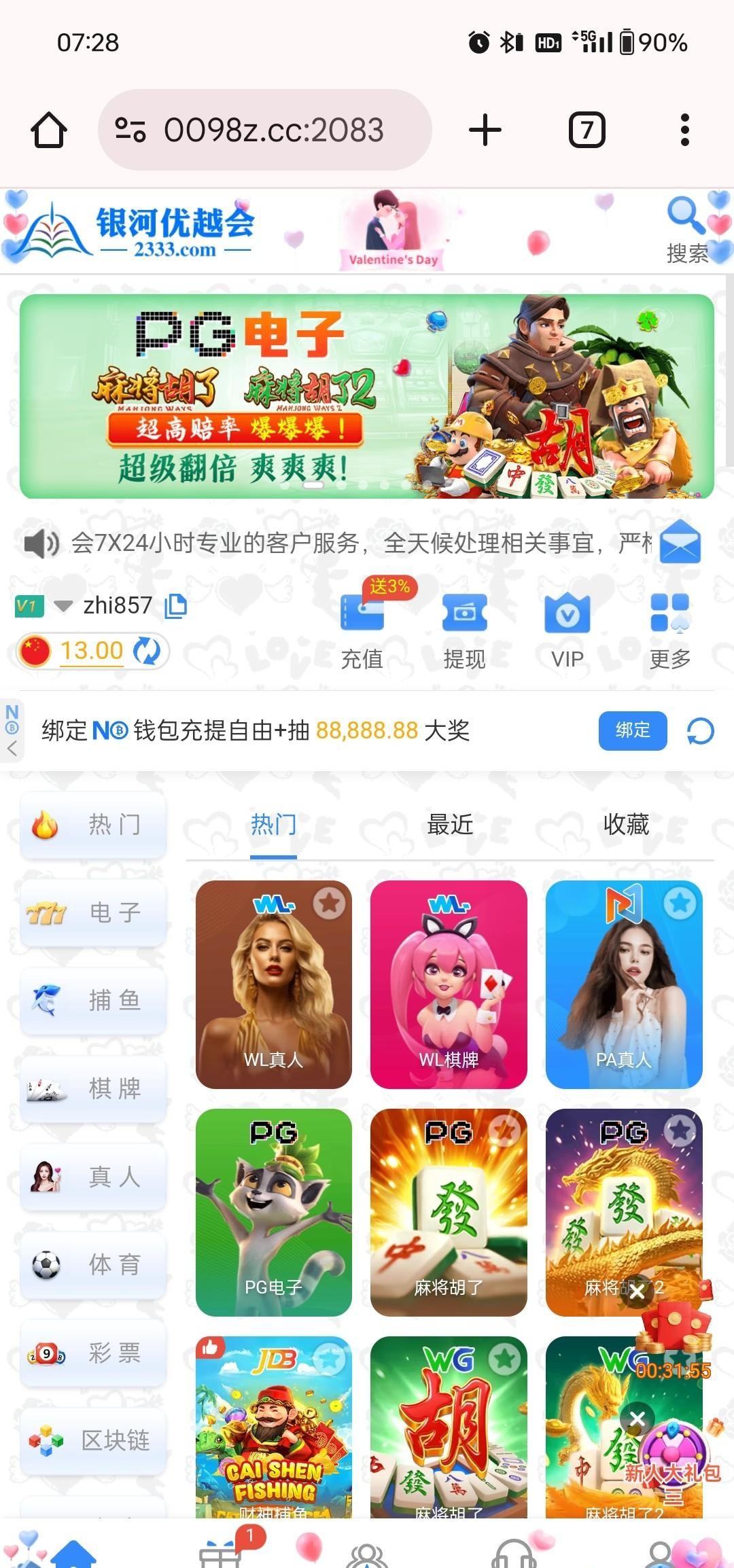 改版了,没充值的有13,充值的有23块2333.com