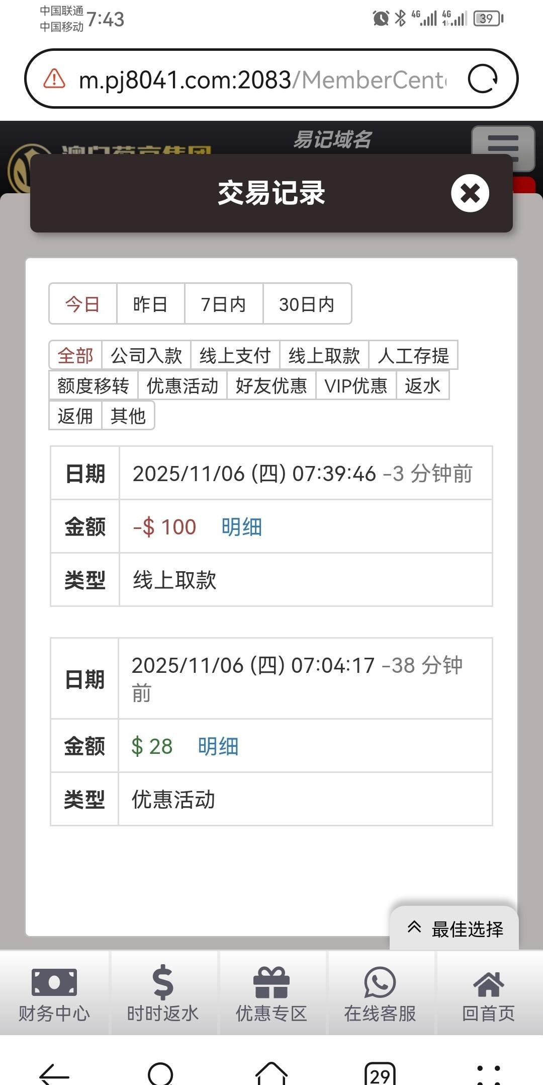 链接047.com  特邀送28,电话来的,不知道查不查,你们试试吧,有没有漏接的,找客服申请,直接爆id,跟他说申请电话回访特邀,我提100,切勿充值。