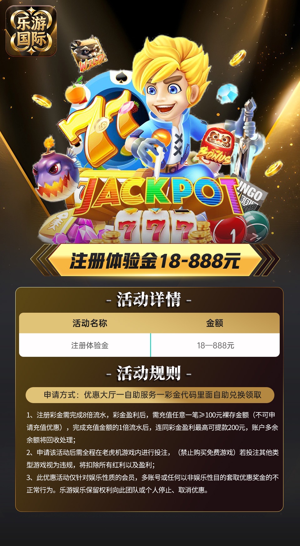【乐游国际】⚜️注册送18⚜️每日100+50