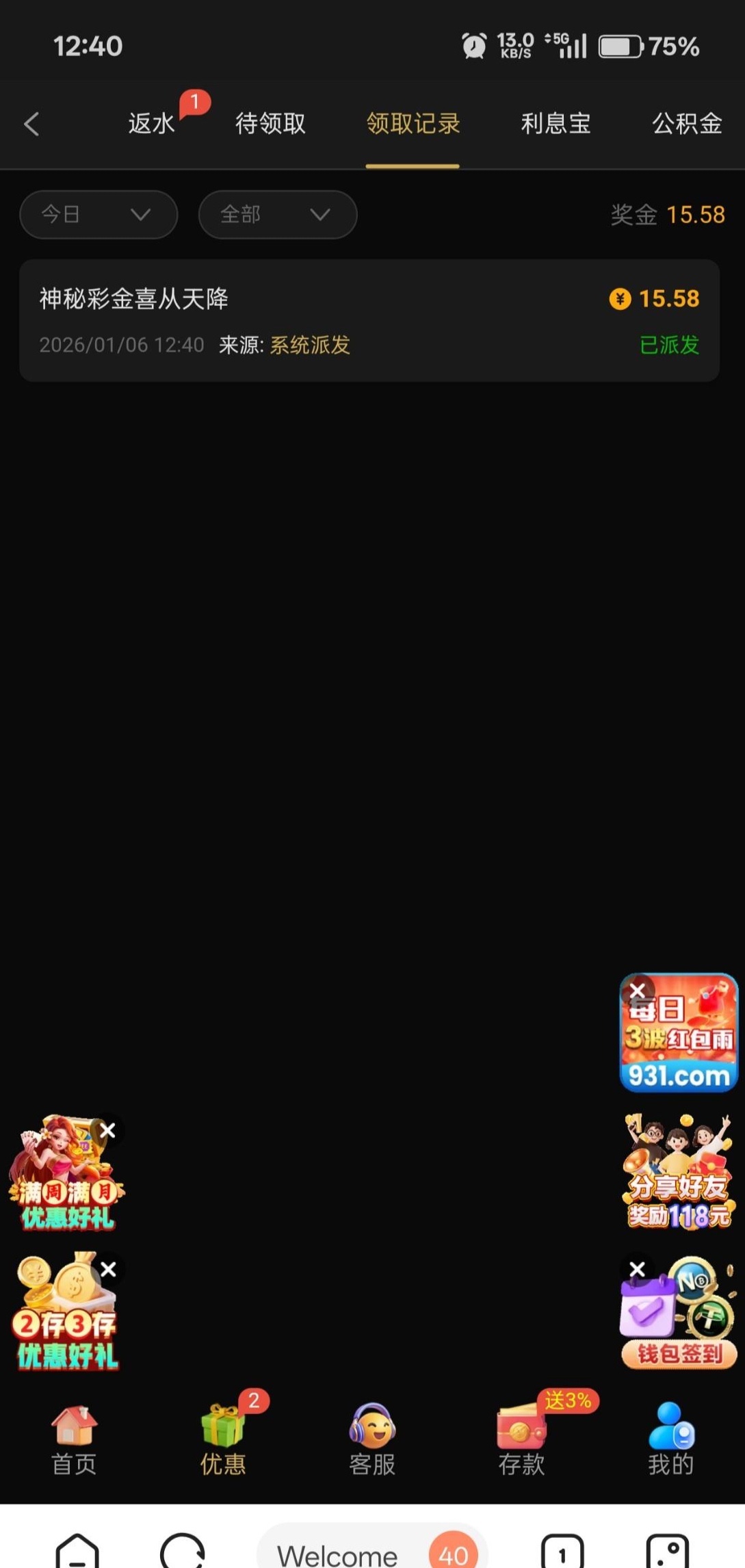 有号的上去看下有没有神秘彩金