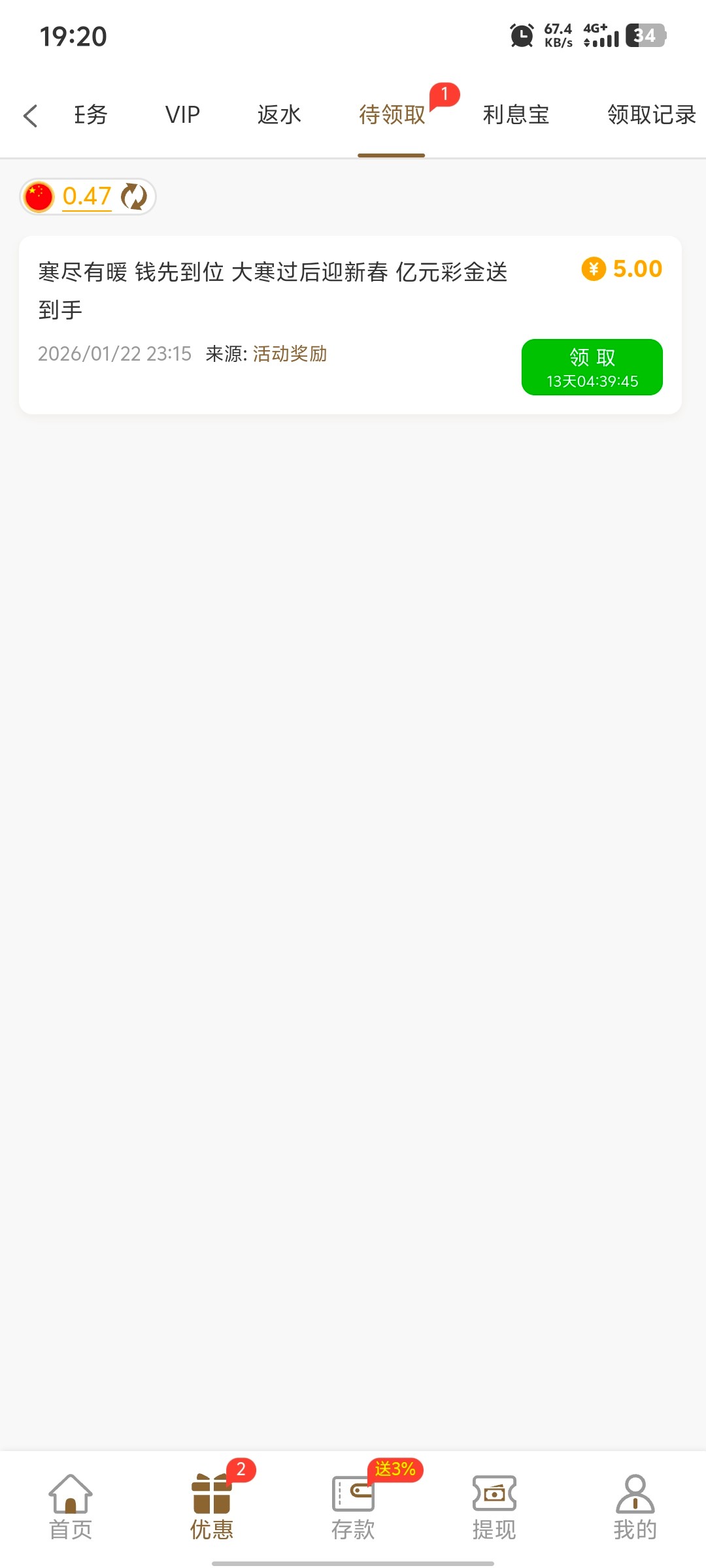 之前充过一百,刚刚登上去有个彩金,玩过的去看一下