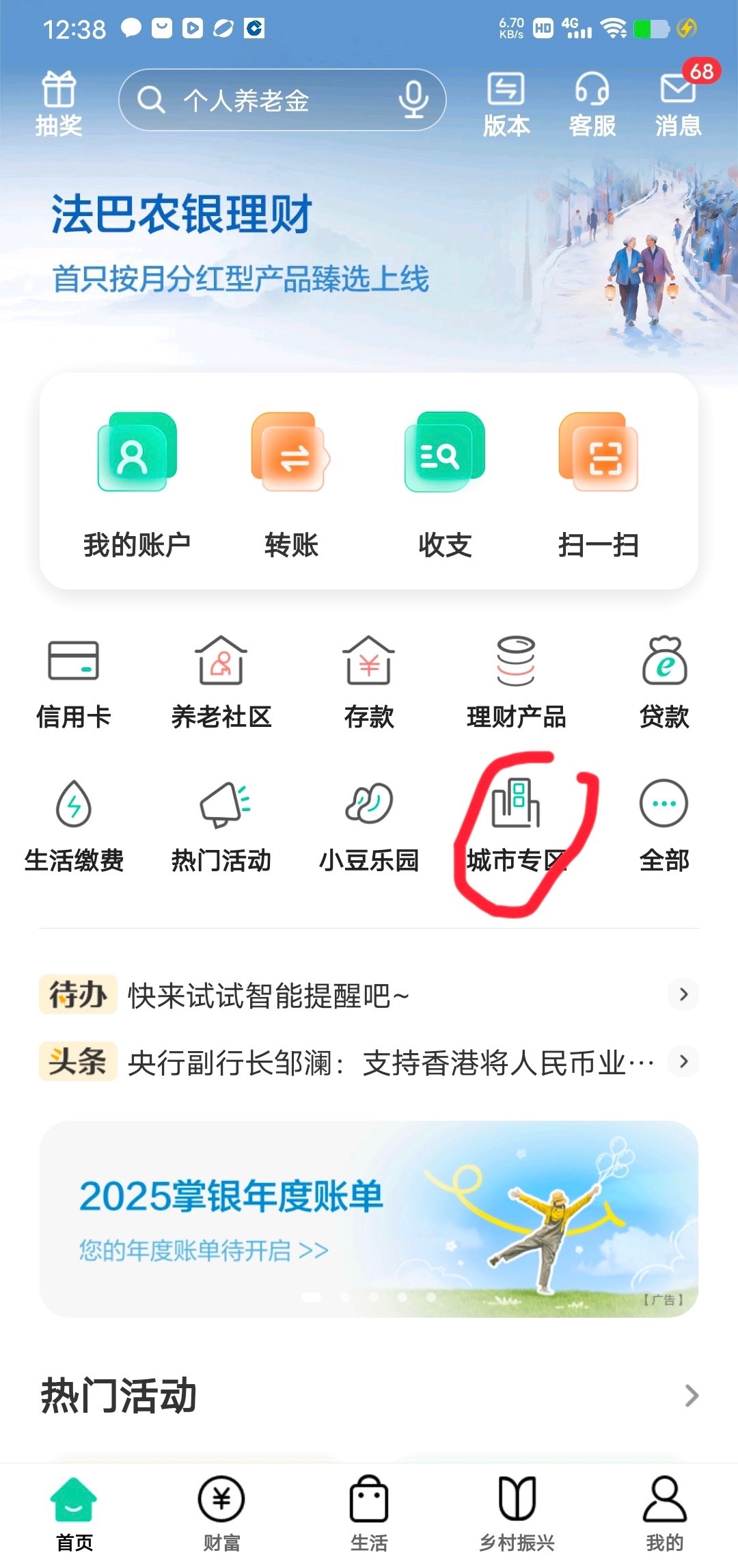 注册农行app地区选湖南代码185689(注册过的注销过重新开通)首页城市专区进去切换到常德就看到了