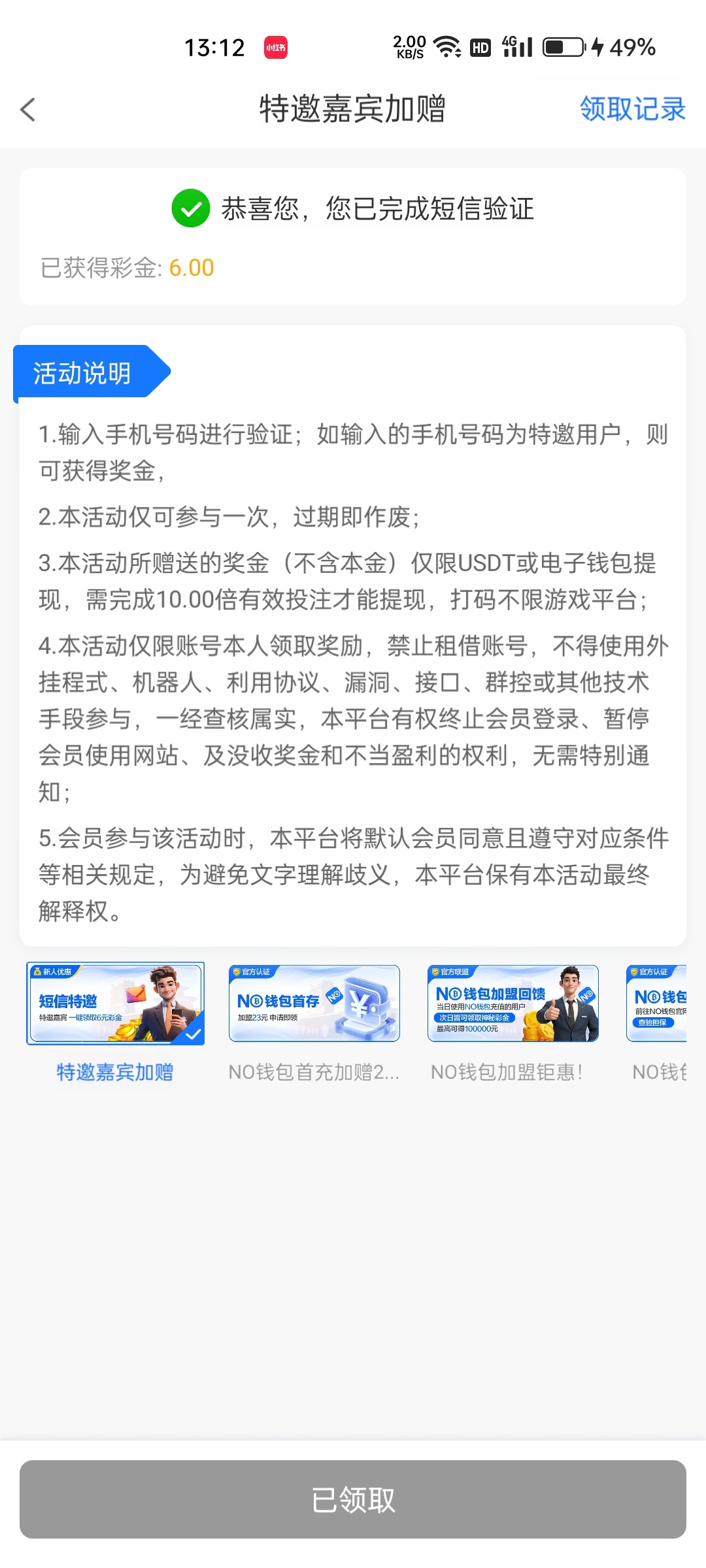 有特邀的可以去看我收到个短信领到了
