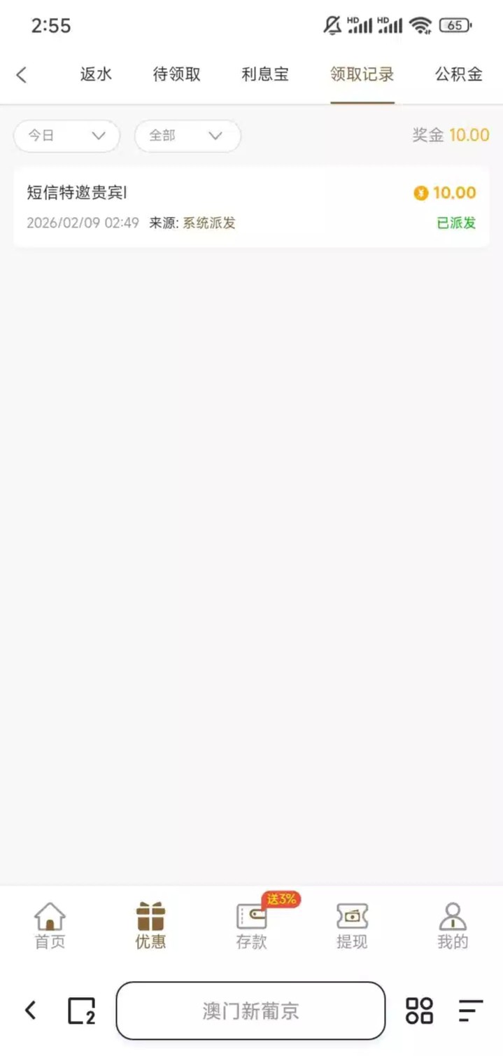 逛h网点进去的,注册绑定常玩的手机号秒到,没打出来,看有没有好运朋友打出来